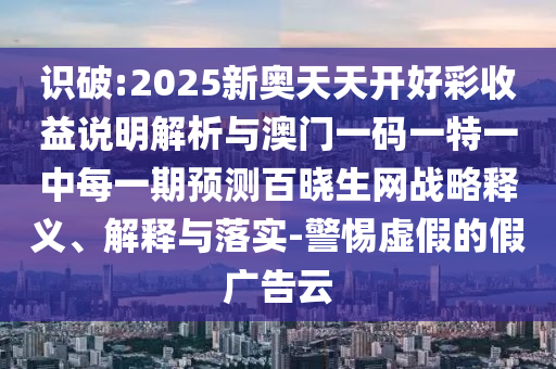 2025新奧天天開(kāi)好彩收益說(shuō)明解析與澳門(mén)一碼一特一中每一期預(yù)測(cè)百曉生網(wǎng)”的戰(zhàn)略釋義、解釋與落實(shí),以及警惕虛假宣傳的文章