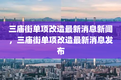 關(guān)于三廟街單項改造的最新消息在城市中引起了廣泛關(guān)注,作為城市更新的重要一環(huán),三廟街的改造不僅是城市面貌的更新,更是社區(qū)發(fā)展的重大機遇,本文將結(jié)合最新消息,從新聞報道的視角出發(fā),探討三廟街改造的進展、特點以及社區(qū)發(fā)展的融合。
