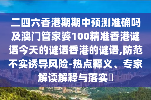 二四六香港期期中預(yù)測(cè)準(zhǔn)確嗎及澳門管家婆100精準(zhǔn)香港謎語(yǔ)今天的謎語(yǔ)香港的謎語(yǔ)熱點(diǎn)釋義、專家解讀解釋與落實(shí)防范不實(shí)誘導(dǎo)風(fēng)險(xiǎn)”的全面解析