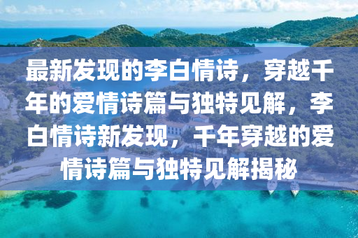 學(xué)術(shù)界傳來喜訊,一批被認(rèn)為是李白的情詩在塵封的歷史長卷中被重新發(fā)掘,這些情詩以其獨特的藝術(shù)魅力與真摯的情感表達(dá),再次引起了人們對這位偉大詩人的關(guān)注與熱議,本文將結(jié)合新聞報道的視角,對這批最新的李白情詩進(jìn)行解讀,并分享個人的見解。
