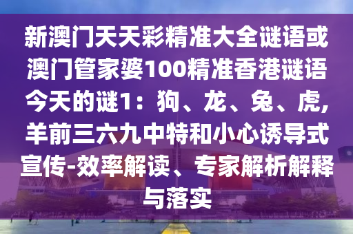新澳門天天彩精準(zhǔn)大全謎語(yǔ)或澳門管家婆100精準(zhǔn)香港謎語(yǔ)今天的謎1:狗、龍、兔、虎,羊前三六九中特和小心誘導(dǎo)式宣傳-效率解讀、專家解析解釋與落實(shí)
