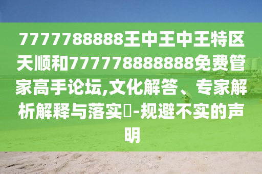 7777788888王中王中王特區(qū)天順和777778888888免費管家高手論壇的文化解答、專家解析解釋與落實?