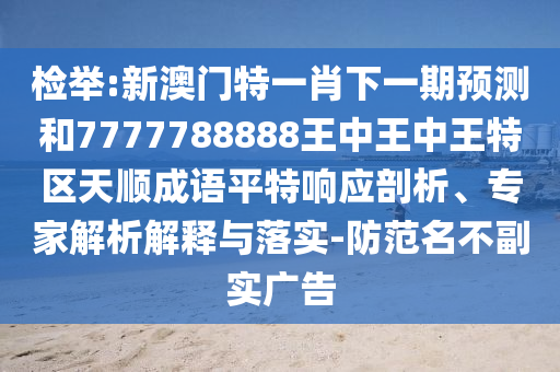 檢舉:新澳門特一肖下一期預測和7777788888王中王中王特區(qū)天順成語平特響應剖析、專家解析解釋與落實-防范名不副實廣告