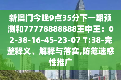 是關(guān)于“新澳門今晚9點35分下一期預(yù)測”和“77778888888王中王:02-38-16-45-23-07 T:38”的完整釋義、解釋與落實,以及防范迷惑性推廣的警示,希望大家能夠理性對待游戲,警惕虛假宣傳,保護自己的合法權(quán)益。