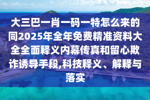 關(guān)于大三巴一肖一碼一特怎么來的同2025年全年免費精準(zhǔn)資料大全全面釋義內(nèi)幕傳真這一概念,涉及到多個復(fù)雜領(lǐng)域,包括博彩、預(yù)測、數(shù)據(jù)分析等,同時也與互聯(lián)網(wǎng)上的信息流傳、欺詐手段密切相關(guān),本文將通過科技釋義、解釋與落實相關(guān)概念的方式,幫助用戶理解這一概念的內(nèi)涵,并提醒用戶留心可能的欺詐誘導(dǎo)手段。