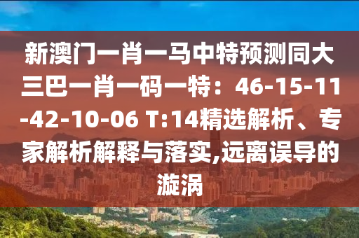 新澳門一肖一馬中特預(yù)測(cè)同大三巴一肖一碼一特:46-15-11-42-10-06 T:14的精選解析、專家解析解釋與落實(shí)