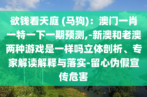 欲錢看天庭(馬狗):澳門一肖一特一下一期預測”及相關話題的立體剖析、專家解讀與防范虛假宣傳危害