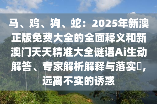 關于關鍵詞“馬、雞、狗、蛇”以及與之相關的“新澳正版免費大全”、“新澳門天天精準大全謎語Ai生動解答”、“專家解析解釋與落實”等內容的全面釋義和解釋,同時提醒公眾警惕虛假宣傳,以下是我的文章: