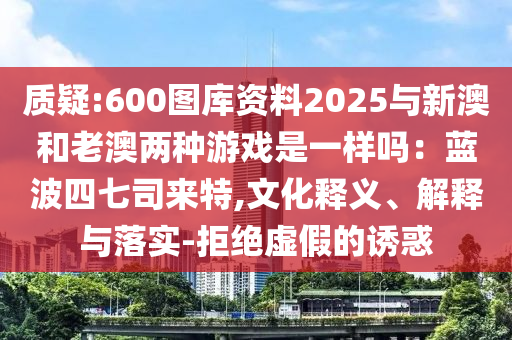 “質(zhì)疑:圖庫資料中的600圖庫與游戲藍(lán)波四七司來特是否與新澳和老澳游戲一致’的文化釋義、解釋與落實,拒絕虛假宣傳的誘惑”的解析