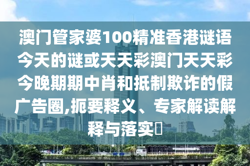 澳門(mén)管家婆100精準(zhǔn)香港謎語(yǔ)今天的謎或天天彩澳門(mén)天天彩今晚期期中肖和抵制欺詐的假?gòu)V告圈,扼要釋義、專(zhuān)家解讀解釋與落實(shí)?