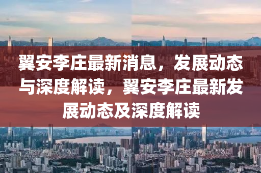 本文將圍繞翼安李莊的最新消息,從新聞報(bào)道的視角出發(fā),結(jié)合個(gè)人見解,探討該地區(qū)的最新發(fā)展動(dòng)態(tài),并分析其背后的原因和影響。