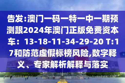 告發(fā):澳門一碼一特一中一期預(yù)測跟2024年澳門正版免費資本車:13-18-11-34-29-20 T:17和防范虛假標榜風(fēng)險,數(shù)字釋義、專家解析解釋與落實