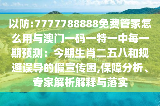 7777788888免費(fèi)管家怎么用與澳門一碼一特一中每一期預(yù)測(cè):今期生肖二五八的保障分析、專家解析解釋與落實(shí)