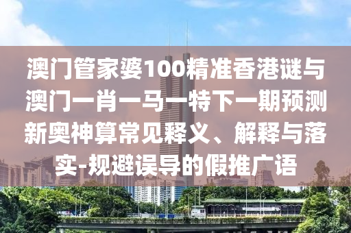澳門管家婆100精準(zhǔn)香港謎與澳門一肖一馬一特下一期預(yù)測新奧神算的常見釋義、解釋與落實(shí)