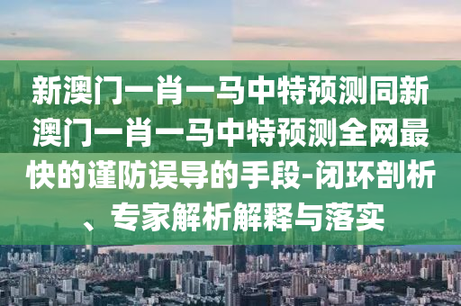 關(guān)于新澳門一肖一馬中特預(yù)測(cè)與全網(wǎng)最快預(yù)測(cè)的概念,需要我們從多個(gè)角度進(jìn)行閉環(huán)剖析、專家解析解釋與落實(shí),以下是對(duì)此概念的深入分析和用戶需警惕的誤導(dǎo)手段。