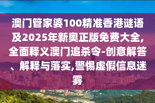 澳門管家婆100精準(zhǔn)香港謎語及2025年新奧正版免費(fèi)大全,全面釋義澳門追殺令的創(chuàng)意解答、解釋與落實(shí)