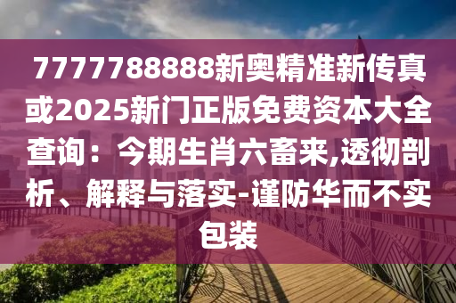 7777788888新奧精準新傳真或2025新門正版免費資本大全查詢:今期生肖六畜來的透徹剖析、解釋與落實