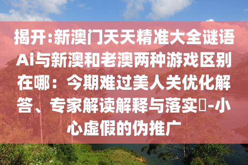 揭開新澳門天天精準(zhǔn)大全謎語Ai與新澳和老澳兩種游戲的區(qū)別:應(yīng)對虛假宣傳的專家解讀與落實(shí)策略