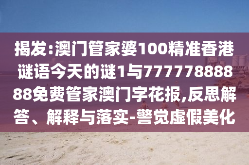 澳門管家婆100精準香港謎語今天的謎1與77777888888免費管家澳門字花報的反思解答、解釋與落實