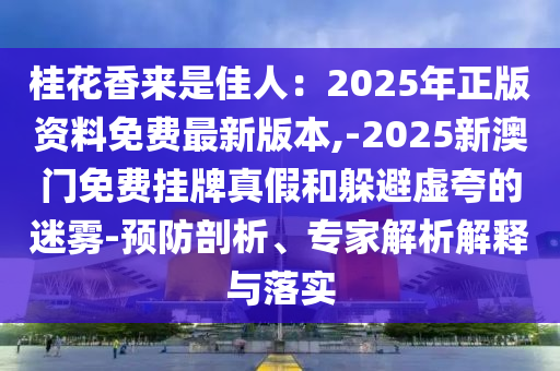 桂花香來是佳人:2025年正版資料免費最新版本,-2025新澳門免費掛牌真假和躲避虛夸的迷霧-預防剖析、專家解析解釋與落實