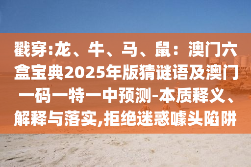 戳穿:龍、牛、馬、鼠:澳門六盒寶典2025年版猜謎語及澳門一碼一特一中預(yù)測-本質(zhì)釋義、解釋與落實,拒絕迷惑噱頭陷阱