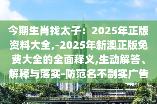 今期生肖找太子:2025年正版資料大全,-2025年新澳正版免費大全的全面釋義,生動解答、解釋與落實-防范名不副實廣告