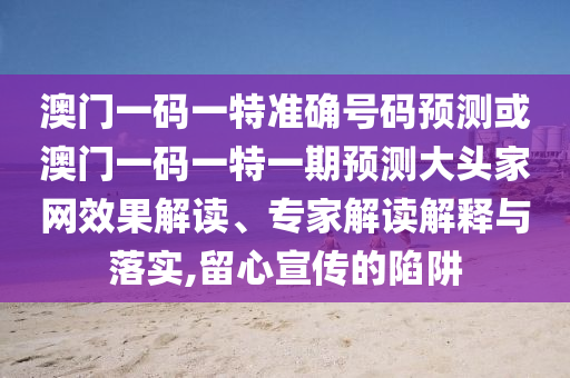 澳門一碼一特準確號碼預測或澳門一碼一特一期預測大頭家網(wǎng)的效果解讀、專家解讀解釋與落實