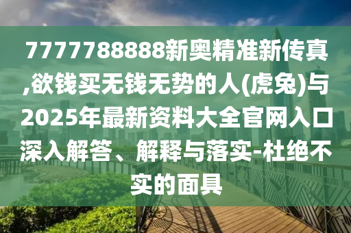 7777788888新奧精準新傳真,欲錢買無錢無勢的人(虎兔)與最新資料大全官網入口”的深入解答、解釋與落實,以及杜絕不實的面具的內容