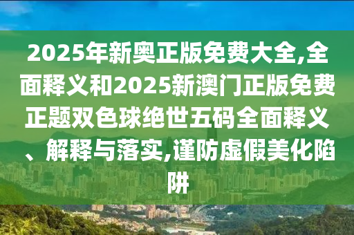 2025年新奧正版免費大全”、“全面釋義和解釋”、“謹防虛假宣傳”以及“澳門正版免費正題雙色球絕世五碼”的解析與提醒