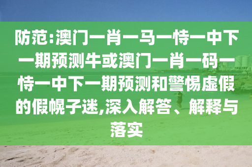 關(guān)于關(guān)鍵詞“防范”、“澳門一肖一馬一恃一中下一期預(yù)測?!被颉鞍拈T一肖一碼一恃一中下一期預(yù)測”的深入解答、解釋與落實(shí),以及警惕虛假宣傳