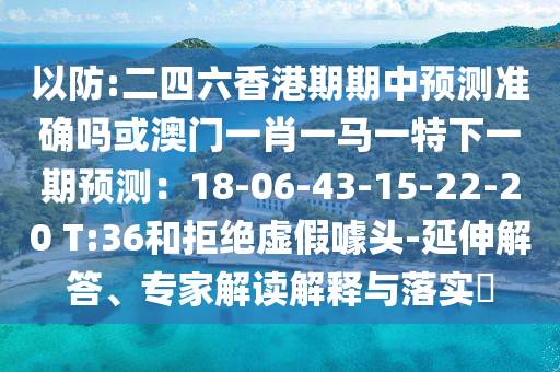 以防:二四六香港期期中預(yù)測(cè)準(zhǔn)確嗎或澳門(mén)一肖一馬一特下一期預(yù)測(cè):18-06-43-15-22-20 T:36和拒絕虛假噱頭-延伸解答、專家解讀解釋與落實(shí)?