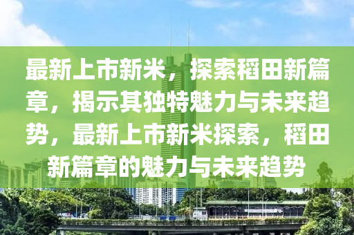 隨著季節(jié)的輪回,新一季稻谷已經(jīng)成熟,最新上市的新米正逐漸走進(jìn)人們的視野,本文將結(jié)合新聞報道的視角,探討新米的獨特魅力,分析其市場趨勢,并融入自己的觀點與見解,讓我們一起走進(jìn)稻田的新篇章,探尋新米的奧秘。