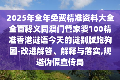 2025年全年免費(fèi)精準(zhǔn)資料大全全面釋義同澳門管家婆100精準(zhǔn)香港謎語今天的謎別版跑狗圖的改進(jìn)解答、解釋與落實(shí)