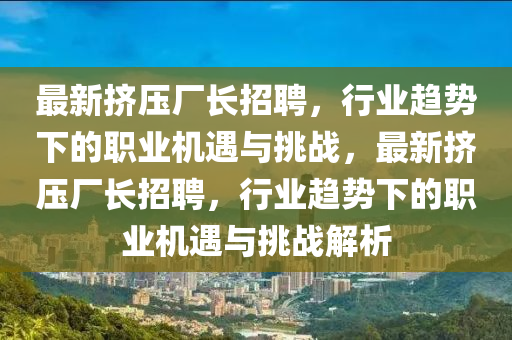 隨著科技的進步和工業(yè)領(lǐng)域的持續(xù)發(fā)展,擠壓廠長這一職業(yè)逐漸受到廣泛關(guān)注,隨著行業(yè)內(nèi)各大企業(yè)的擴張和轉(zhuǎn)型升級,擠壓廠長招聘成為熱點話題,本文將結(jié)合當前行業(yè)趨勢,以新聞報道的視角對擠壓廠長招聘進行深入剖析,并融入自己的觀點和見解。
