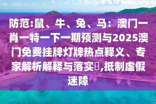 關(guān)于防范鼠、牛、兔、馬生肖預(yù)測(cè)與澳門(mén)免費(fèi)掛牌燈牌熱點(diǎn)的問(wèn)題,我們需要從全面釋義、專(zhuān)家解讀與落實(shí)以及警惕虛假宣傳三個(gè)方面進(jìn)行深入解析,以下是對(duì)此現(xiàn)象的詳細(xì)分析。