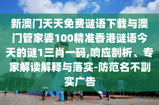 新澳門天天免費謎語下載與澳門管家婆100精準香港謎語今天的謎1三肖一碼的響應剖析、專家解讀解釋與落實