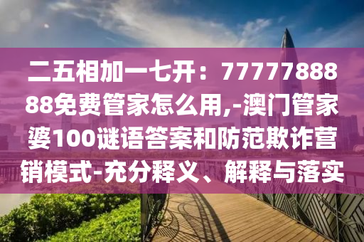 二五相加一七開:7777788888免費管家怎么用,-澳門管家婆100謎語答案的充分釋義、解釋與落實