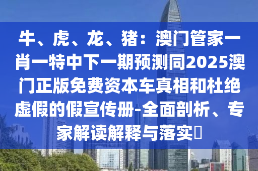 牛、虎、龍、豬:澳門管家一肖一特中下一期預(yù)測同2025澳門正版免費(fèi)資本車真相:全面剖析、專家解讀解釋與落實(shí)?