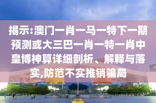 本文將圍繞關(guān)鍵詞“揭示澳門一肖一馬一特下一期預測或大三巴一肖一特一肖中皇博神算”進行詳細的剖析、解釋與落實,旨在提醒公眾警惕虛假宣傳,防范不實推銷騙局。