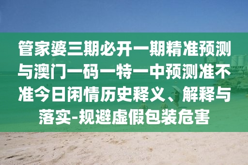 關(guān)于管家婆三期必開一期精準預(yù)測與澳門一碼一特一中預(yù)測準不準今日閑情的探討,以及規(guī)避虛假包裝危害的相關(guān)釋義、解釋與落實