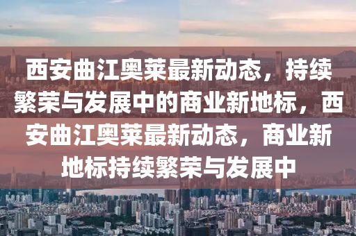 本文將關(guān)注西安曲江奧萊的最新消息,從新聞報(bào)道的視角出發(fā),結(jié)合個(gè)人見解,探討其在城市發(fā)展中的地位與未來趨勢(shì)。