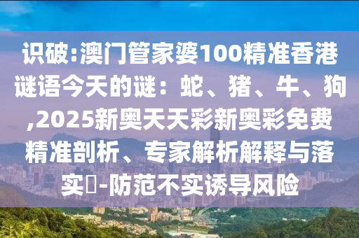 澳門管家婆100精準(zhǔn)香港謎語今天的謎:蛇、豬、牛、狗,2025新奧天天彩新奧彩免費(fèi)的精準(zhǔn)剖析、專家解析解釋與落實?