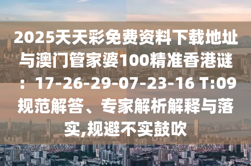 2025天天彩免費資料下載地址與澳門管家婆100精準香港謎:17-26-29-07-23-16 T:09規(guī)范解答、專家解析解釋與落實,規(guī)避不實鼓吹