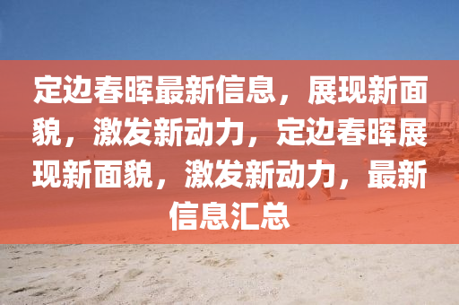 隨著季節(jié)的轉(zhuǎn)換,定邊春暉在每一個新的季節(jié)都帶來令人矚目的變化和發(fā)展,這片土地上的最新信息充滿了活力和希望,展現(xiàn)了新的面貌,激發(fā)了新的動力,本文將從新聞報(bào)道的視角出發(fā),結(jié)合個人見解,為您揭示定邊春暉的最新信息。