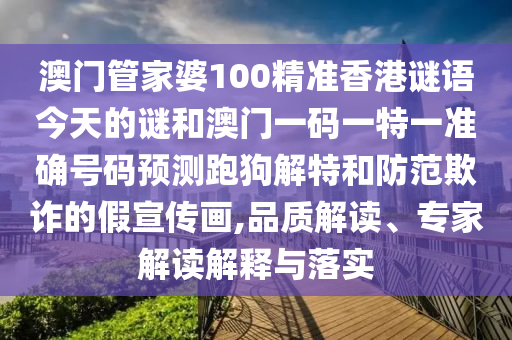 關于澳門管家婆100精準香港謎語、跑狗解特及專家解讀與落實的解析