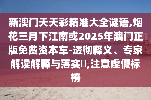 關(guān)于新澳門天天彩精準大全謎語、煙花三月下江南以及澳門正版免費資本車的全面釋義、專家解讀與落實以及警惕虛假宣傳的文章