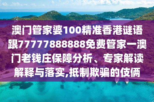 澳門管家婆100精準(zhǔn)香港謎語跟77777888888免費管家一澳門老錢莊:保障分析、專家解讀解釋與落實