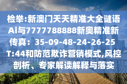 關(guān)于檢舉、新澳門天天精準大全謎語Ai與7777788888新奧精準新傳真等相關(guān)內(nèi)容的釋義、解釋、落實及防范欺詐營銷模式的文章