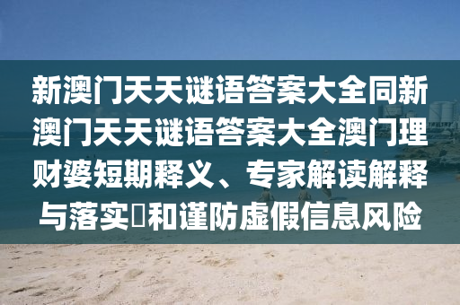 新澳門(mén)天天謎語(yǔ)答案大全同新澳門(mén)天天謎語(yǔ)答案大全澳門(mén)理財(cái)婆短期釋義、專家解讀解釋與落實(shí)?和謹(jǐn)防虛假信息風(fēng)險(xiǎn)