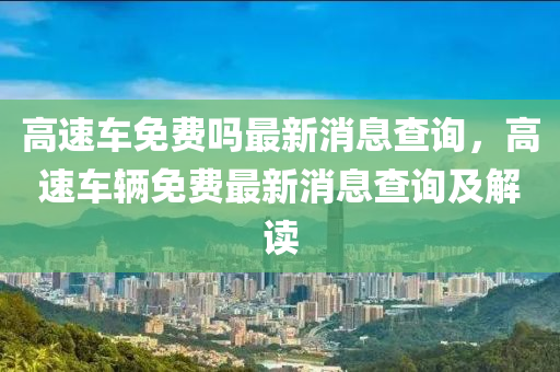 高速車免費(fèi)嗎最新消息查詢,高速車輛免費(fèi)最新消息查詢及解讀